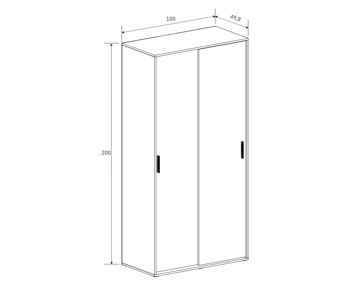- Armario: alto 200 cm, ancho 100 cm, fondo 49,8 cm.
