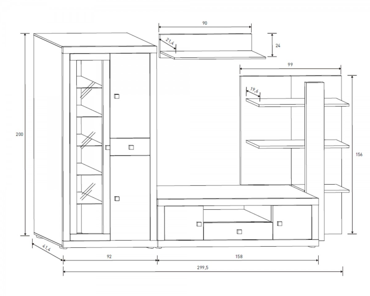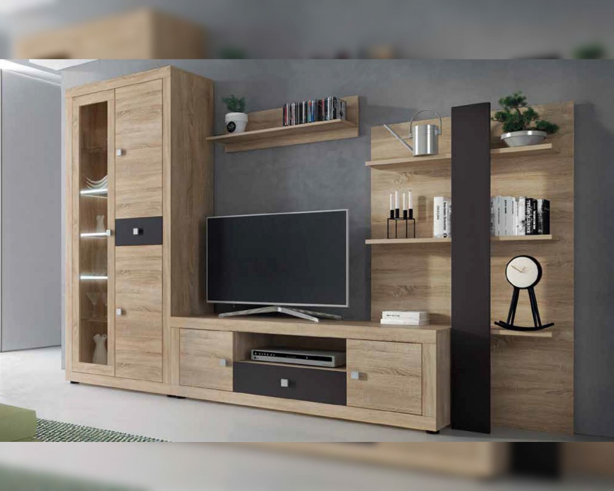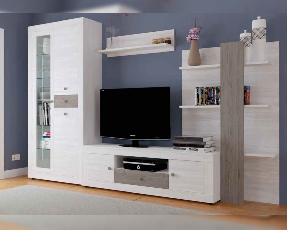 Otra estupenda composición de salón de nuestro catálogo Avanza completísima con su vitrina con luces led, su librería abierta, el estante superior y el bajo de TV.