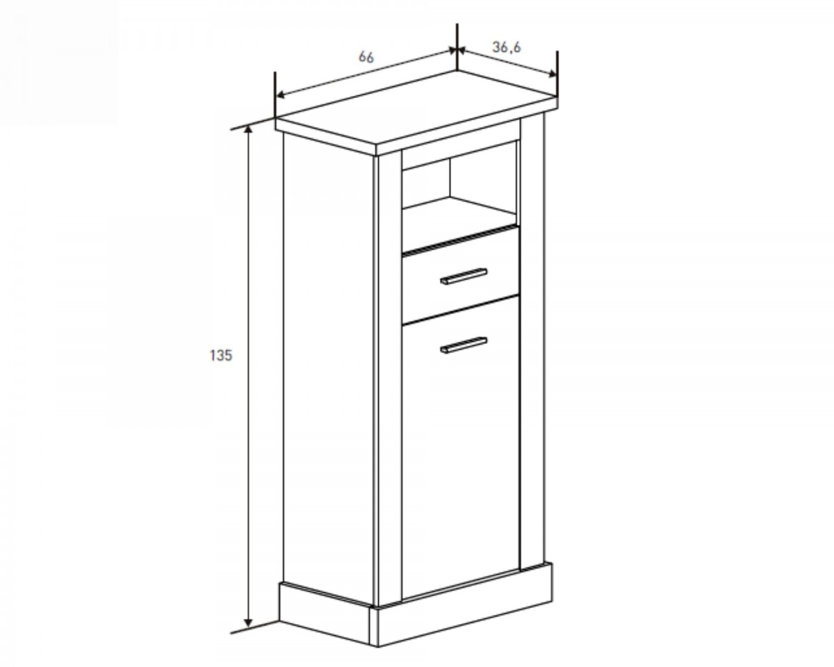 - Distribución de 1 hueco + 1 cajón + 1 puerta batiente.