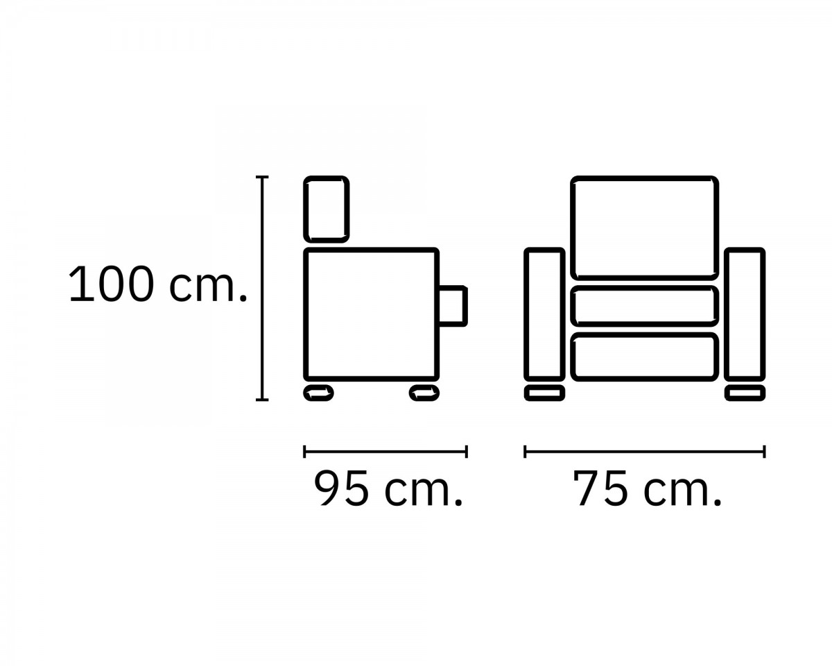 - Butaca: alto 100 cm, ancho 75 cm, fondo 95 cm.
