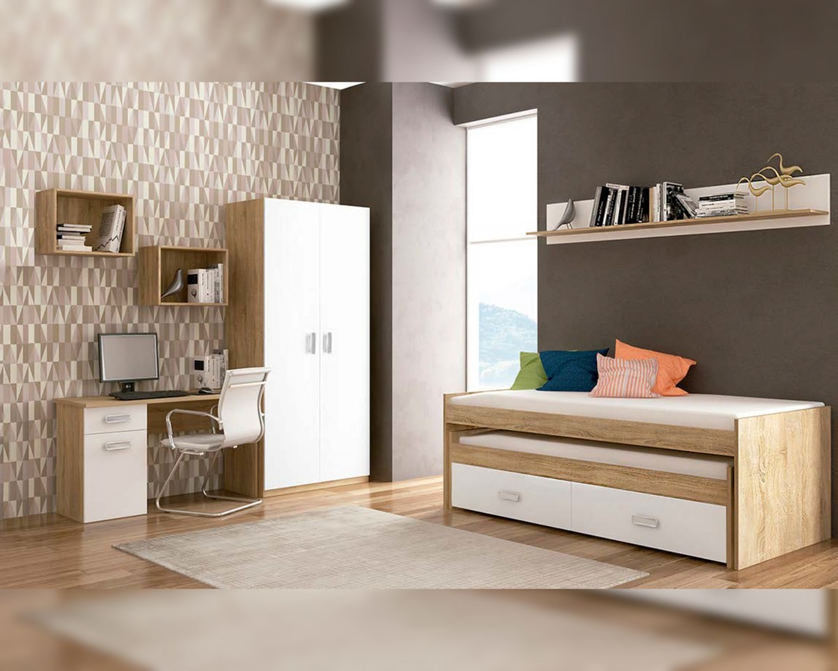 - Cama compacto con cama superior, inferior y dos cajones.