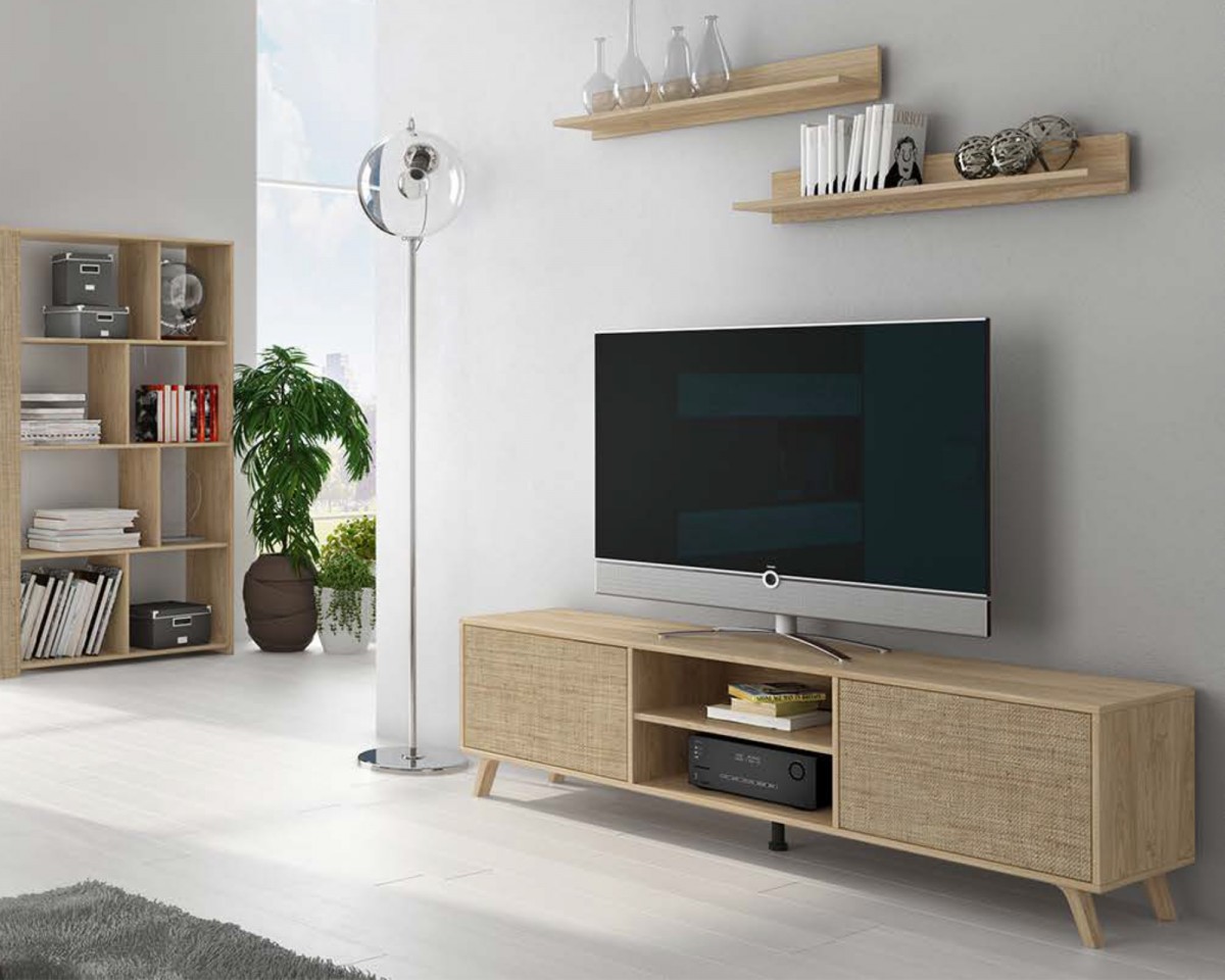 - Bajo TV: alto 49 cm, ancho 180 cm, fondo 39,6 cm.