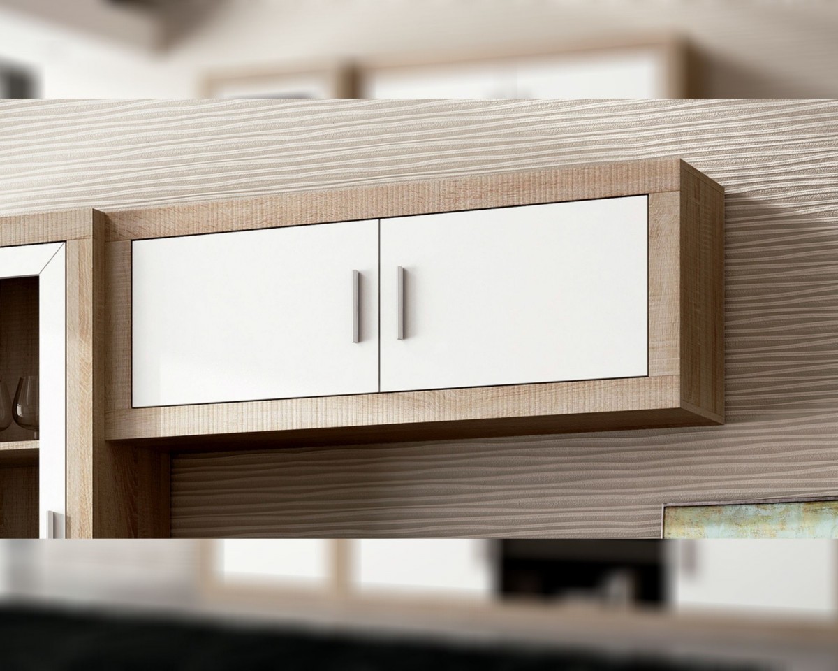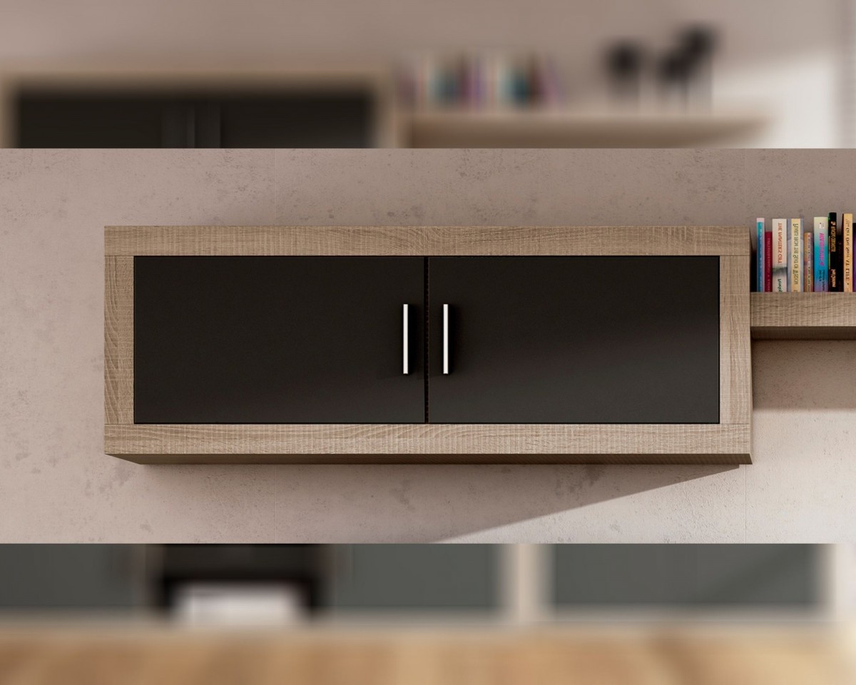 El altillo Lara de 2 puertas está preparado para dar un espacio extra a nuestra composición de salón, tiene el ancho justo para combinar con el bajo de TV con cajones en chaflán y combina con todas las piezas de la familia Lara.