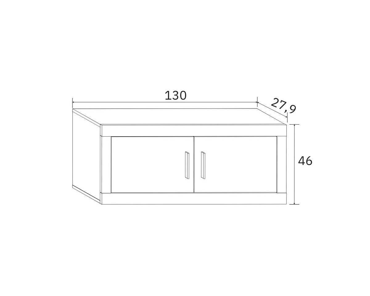 - Alto 2 puertas: alto 46 cm, ancho 130 cm, fondo 27,9 cm.