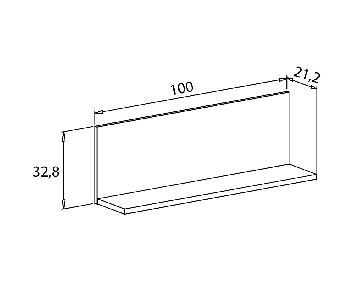 - Estante: alto 32,8 cm, ancho 100 cm, fondo 21,2cm.