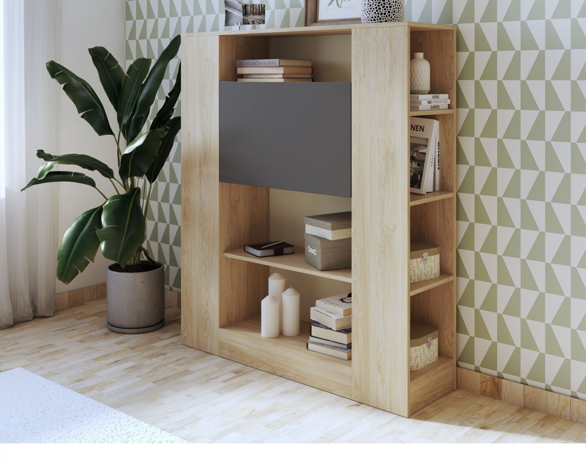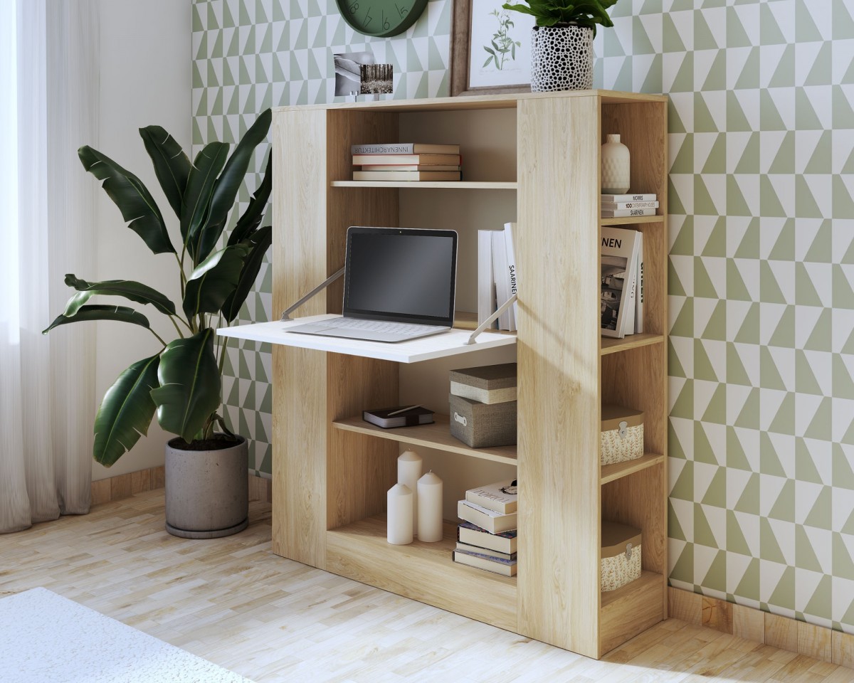 - Escritorio abatible incorporado en la estantería.