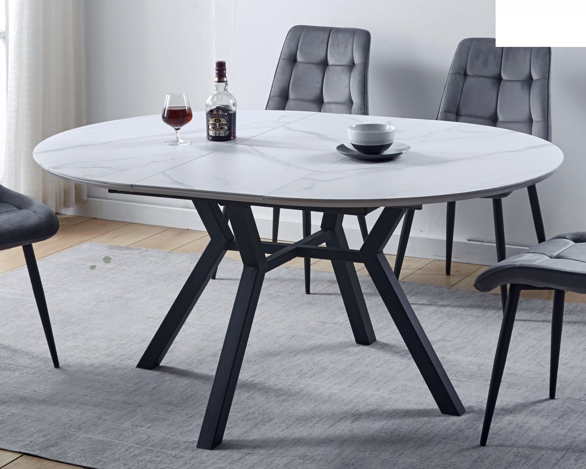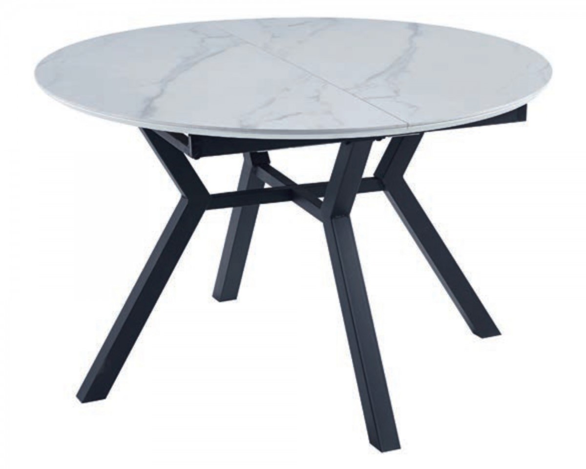 Mesa de comedor de 120 cm extensible a 160 cm con patas pintadas de negro de estilo industrial. Con acabados de primera calidad y de estilo muy moderno.