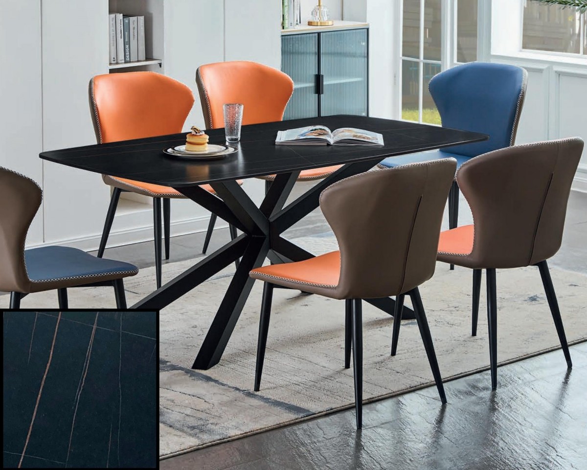 - Patas de hierro de diseño en forma de cruz de color negro.