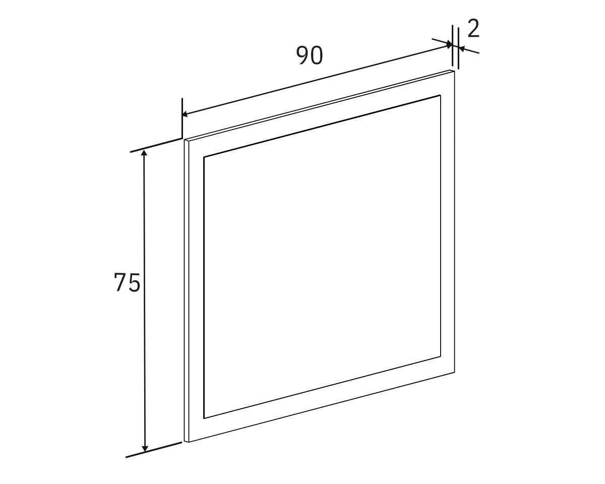 - Espejo: alto 75 cm, ancho 90 cm, fondo 2 cm.