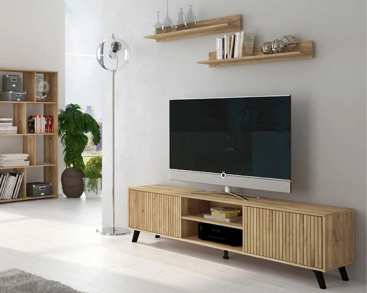 - Bajo TV: alto 49 cm, ancho 180 cm, fondo 39,6 cm.